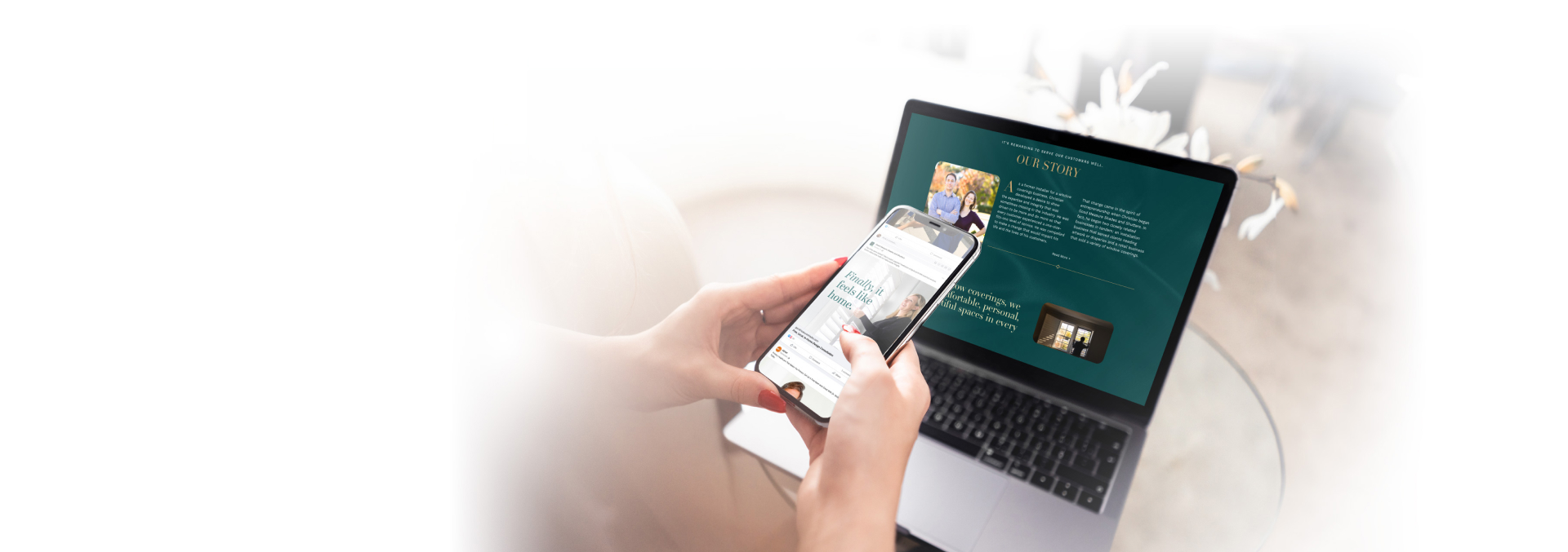 Great photography tells a story. Because GMSS centers around bringing natural light into the home, we wanted to "paint with natural light" through the scenes we photographed, capturing clients truly enjoying their homes. This intentional photographic style visually validated GMSS's new tagline: Your Home, Made Yours.