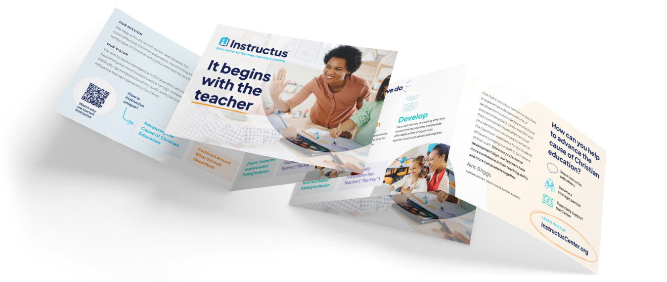 Before creating awareness, the center had to have a great name. To name the center, we worked through its vision and mission and then created a series of options that conveyed that mission. The name "Instructus" beat out all of the other options. "Instructus" has Latin roots that mean "to teach and develop," a fitting name to match its vision.